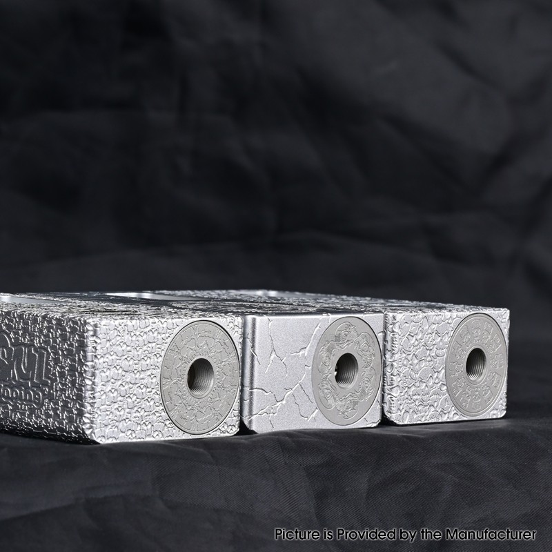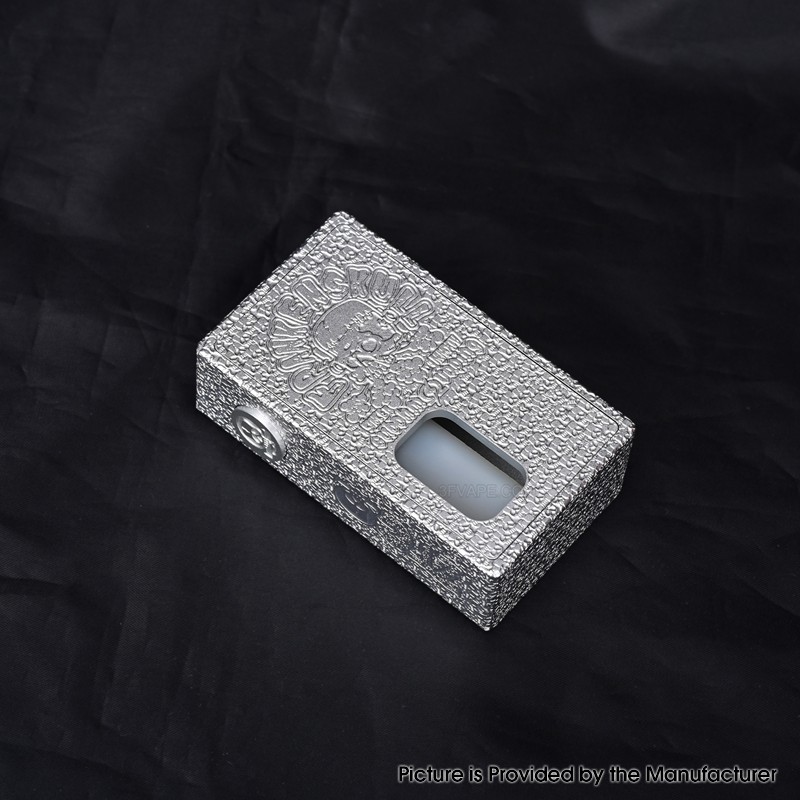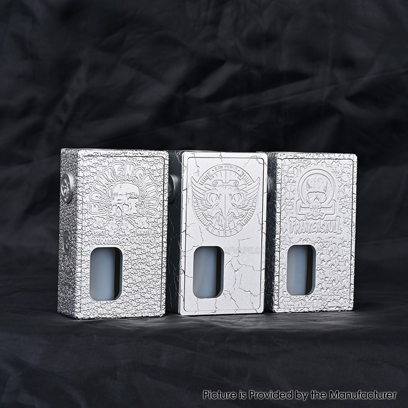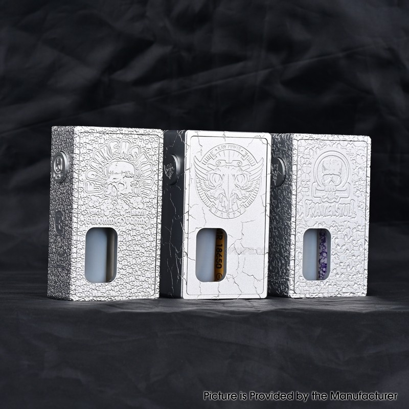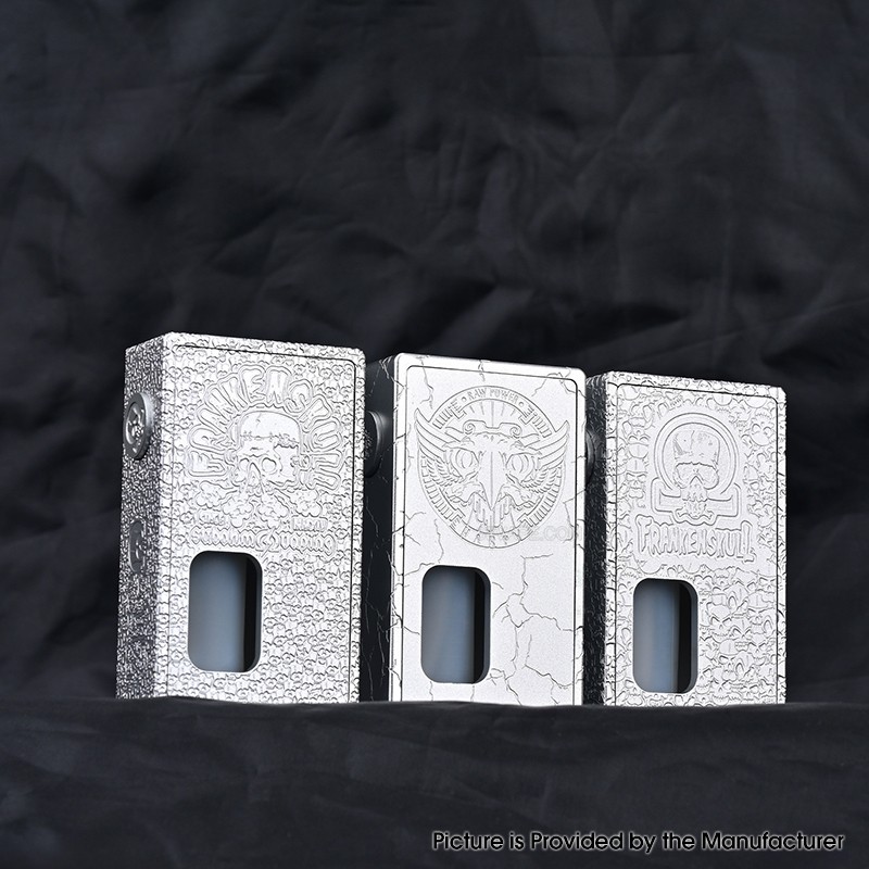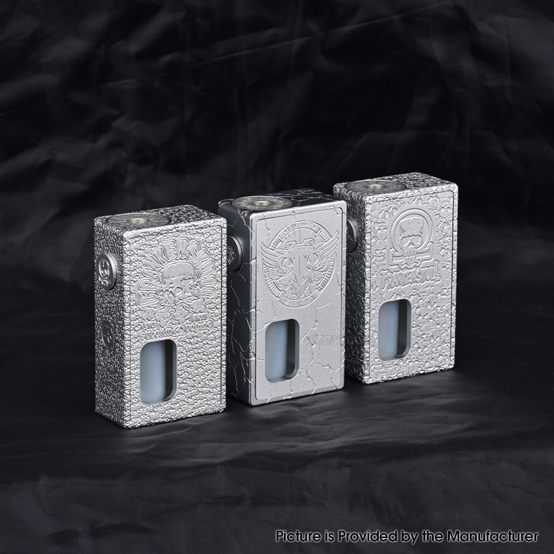 The Frankenskull Style Squonk BF Bottom Feeder Mechanical Box Mod is made from aluminum alloy and Power by 1 x 18650 battery (Not included). The Positive electrode insulation circuit protection (safe and reliable) and battery supports both positive and negative installation. The internal silver parts of the 18650 ignition plate are all silver-plated brass.