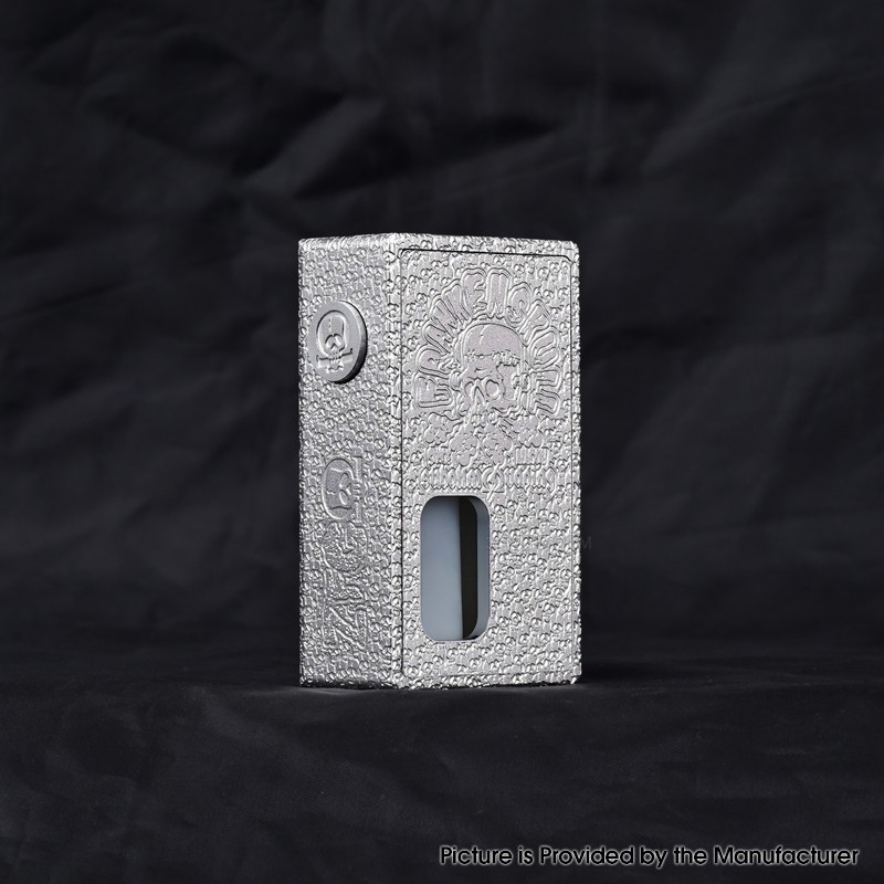 The Frankenskull Style Squonk BF Bottom Feeder Mechanical Box Mod is made from aluminum alloy and Power by 1 x 18650 battery (Not included). The Positive electrode insulation circuit protection (safe and reliable) and battery supports both positive and negative installation. The internal silver parts of the 18650 ignition plate are all silver-plated brass.
