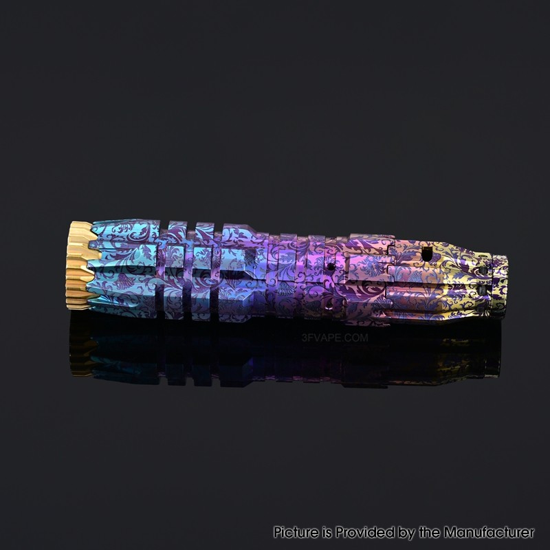 The Comp Lyfe Comply Predator Style Mechanical Mech Mod is made from Titanium Alloy with 24mm diameter and powered by 1 x 18650 Battery (not included).