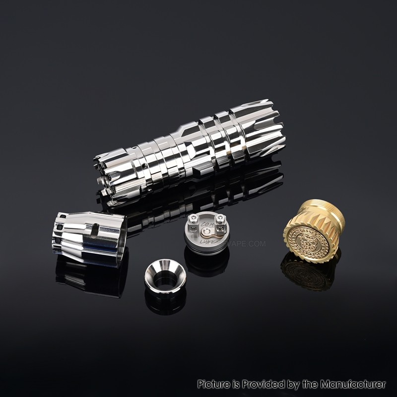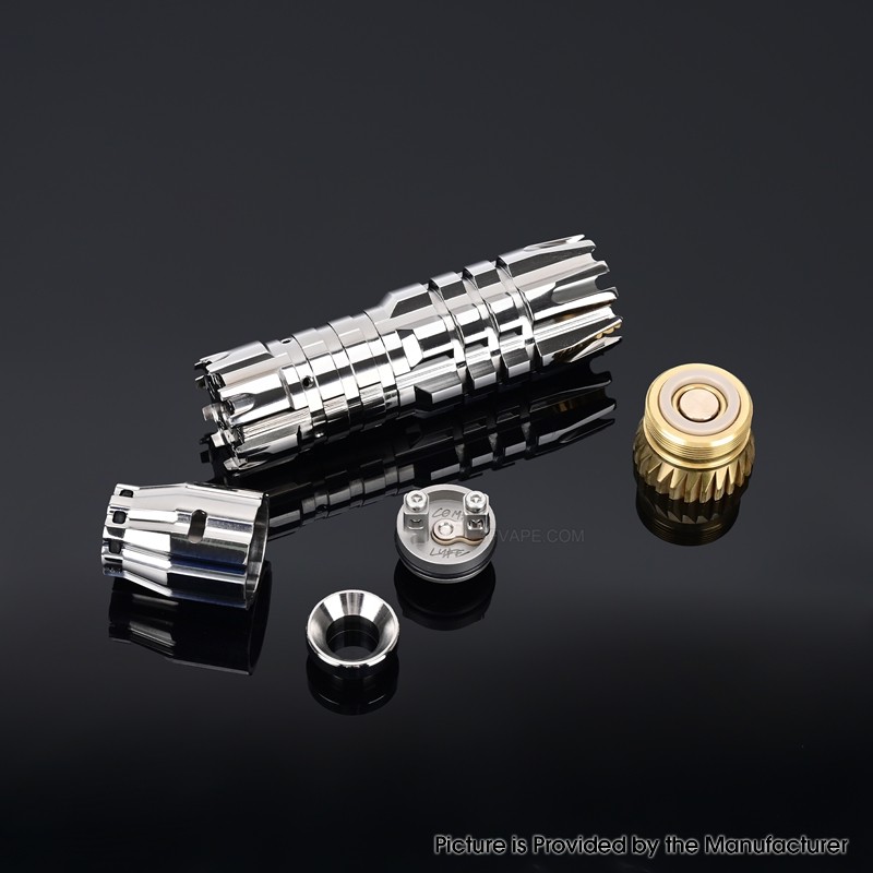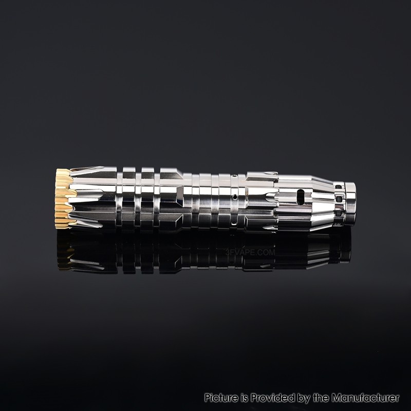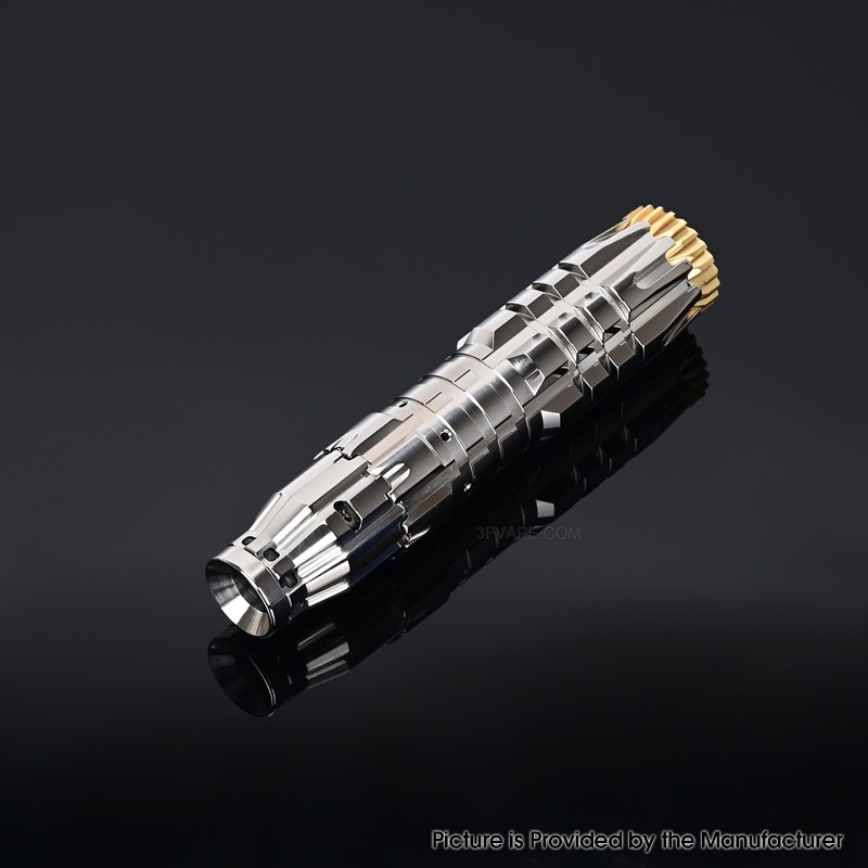 The Comp Lyfe Comply Predator Style Mechanical Mech Mod is made from Titanium Alloy with 24mm diameter and powered by 1 x 18650 Battery (not included).
