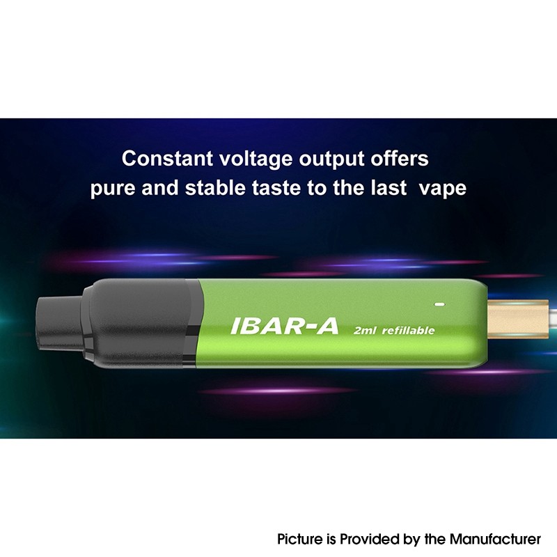 The authentic Kanger IBAR-A Pod System Kit is powered by a built-in 400mAh battery with 3.6V constant voltage and Type-C charging. The pod cartridge features 2ml capacity, top filling and a built-in 1.2ohm mesh coil.