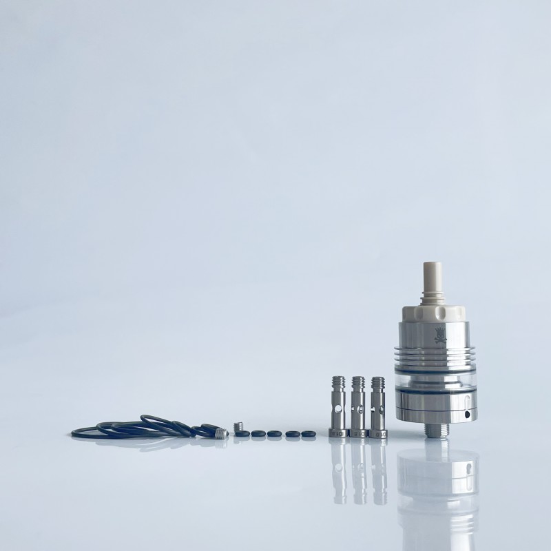 The Rekavape Upgraded Monarchy OST Old School Style F-Dama Tank RTA Atomizer is made from 316 Stainless Steel + PCTG (Tank Tube) + PEEK (Top Cap) with 22mm diameter and 3.0ml capacity. The Rekavape Upgraded Monarchy OST Old School Style Tank RTA Atomizer comes with 4 PCS Air Pin 1.0mm, 1.2mm, 1.5mm, 1.8mm for MTL Vaping.
