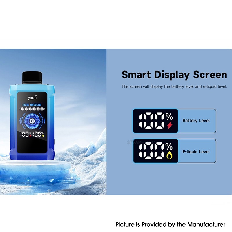 The authentic YUMI P20000 Adjustable ICE Level Disposable Vape Kit is a high-capacity device that will improve your vaping experience. It is ideal for those vape users who enjoy strong flavors and cool hits every puff. This YUMI P20000 will gives you a refreshing vaping experience unlike any other vape devices thanks to its innovative features, which include a strong battery capacity and a customizable ICE Mode.