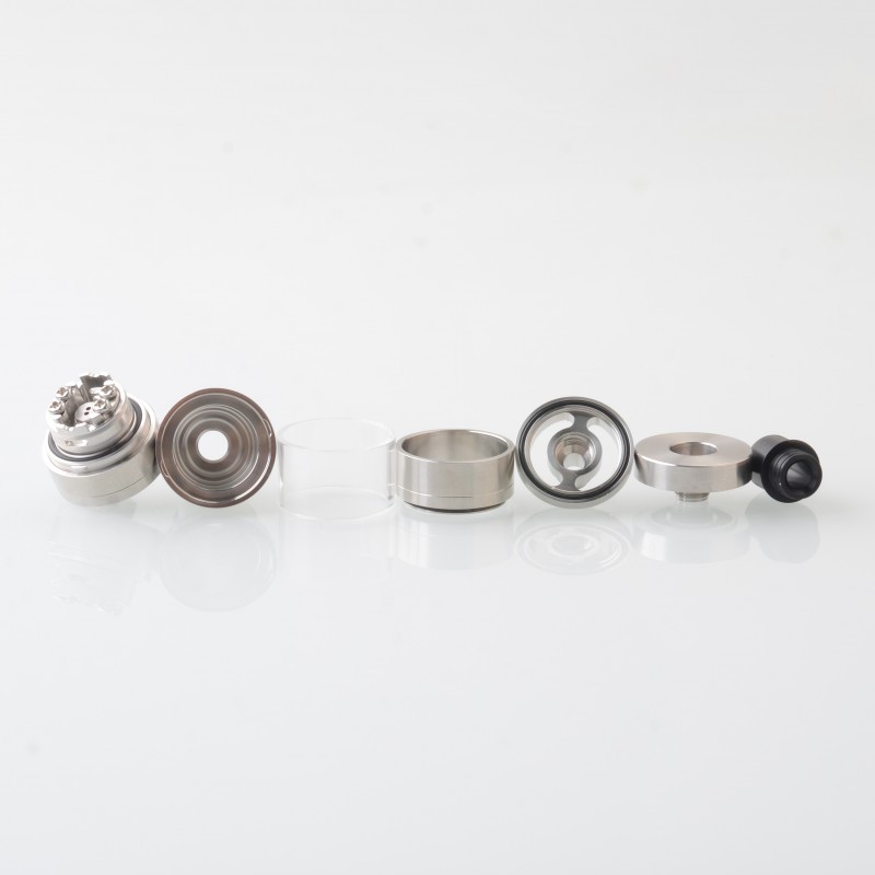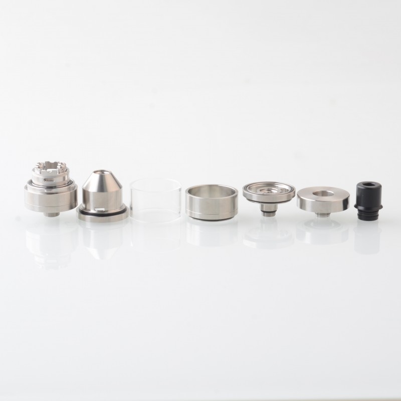 | Package | 1 x Order V2 RTA, 2 x Pyrex Glass, 2 x Drip-tips, 6 x Air Pins (1.0 / 1.2 / 1.4 / 2.0 / 2.5 / 3.2mm, 2 x Airflow ring, 1 x Spare kit |
