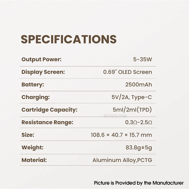 Pod Cartridge Capacity: 5ml