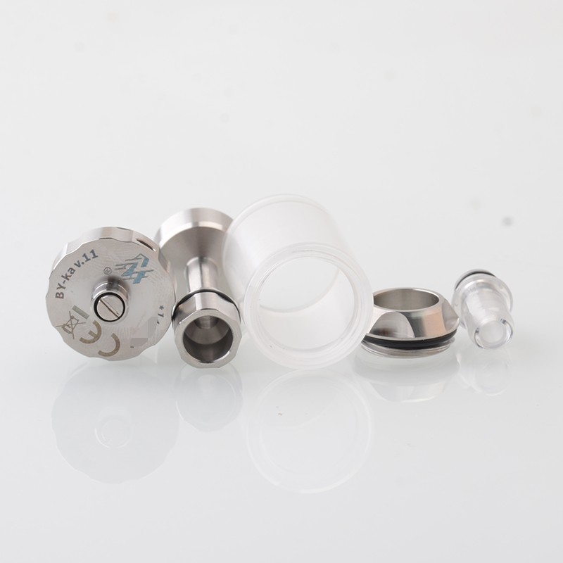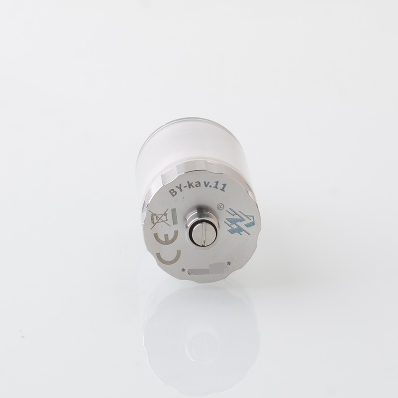The BY-KA V.11 V11 Style MTL RTA Atomizer is made from stainless steel with 23mm diameter and PCTG tank tube with 5.5ml capacity. The RTA comes with 3 PCS Air pins: 1.2mm / 1.4mm / 1.7mm (one pre-installed) for MTL Vaping.
