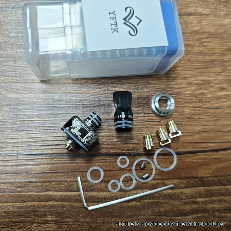 | Package | 1 x RBA, 1 x 510 Drip Tip, 1 x Spare Bag (o-rings & screws), 4 x Airflow Pins (1.0mm, 2.0mm, 3.0mm, 4.0mm) |