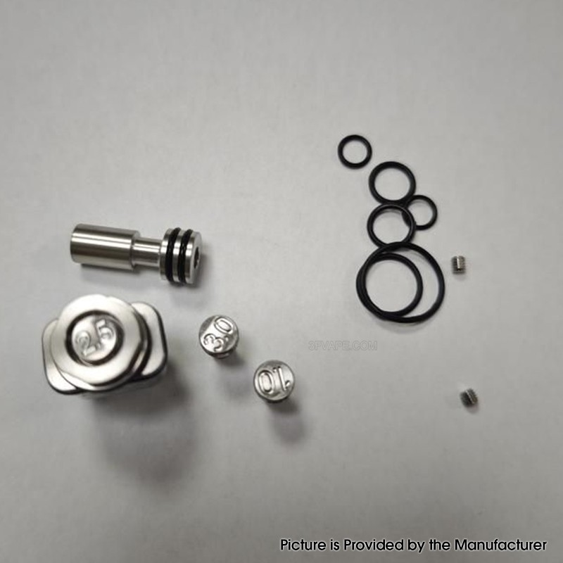 | Package | 1 x RBA, 1 x 510 Drip Tip, 1 x Spare Bag (o-rings & screws), 3 x Airflow Pins (1.0mm, 2.5mm, 3.0mm, 2.5mm pre-installed) |