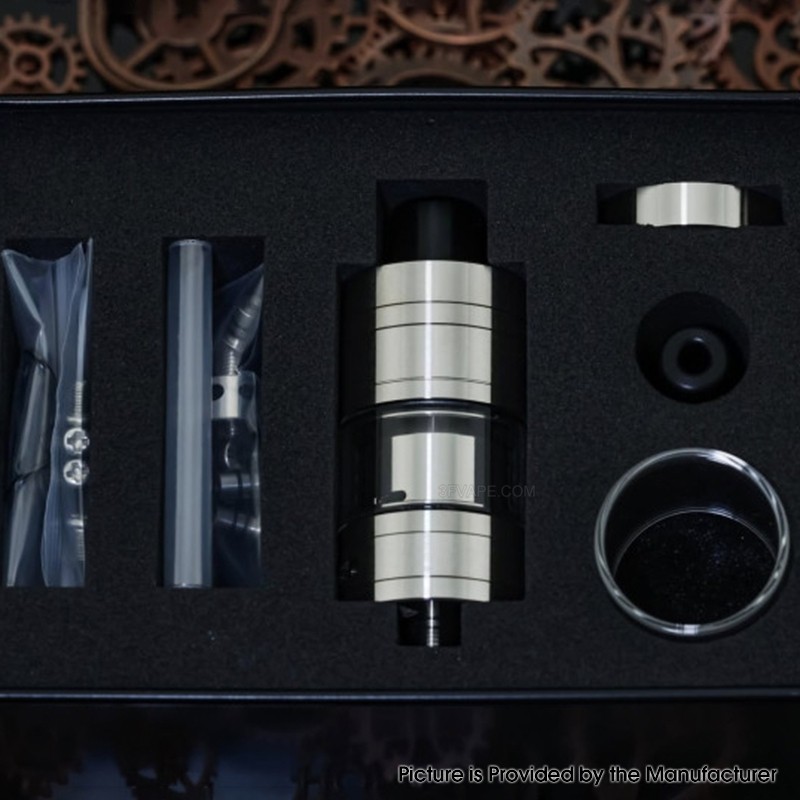 The Authentic L.P MODS Order V2 RTA Rebuildable Tank Atomizer is made from 316 stainelss steel with 22mm diameter and glass tank tube with 4.0ml capacity. Comes with 8 PCS Airflow control Pins 1.0mm / 1.0mm x 2 / 1.2mm / 1.4mm / 2.0mm / 2.5mm / 3.2mm / 3.8mm for MTL / RDL vaping.