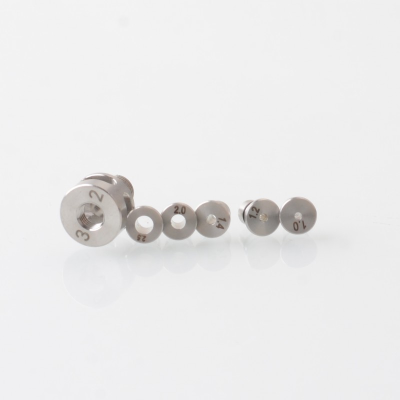 Airflow control: 1.0mm / 1.0mm x 2 (pre-installed) / 1.2mm / 1.4mm / 2.0mm / 2.5mm / 3.2mm, 3.8mm (without air pin)