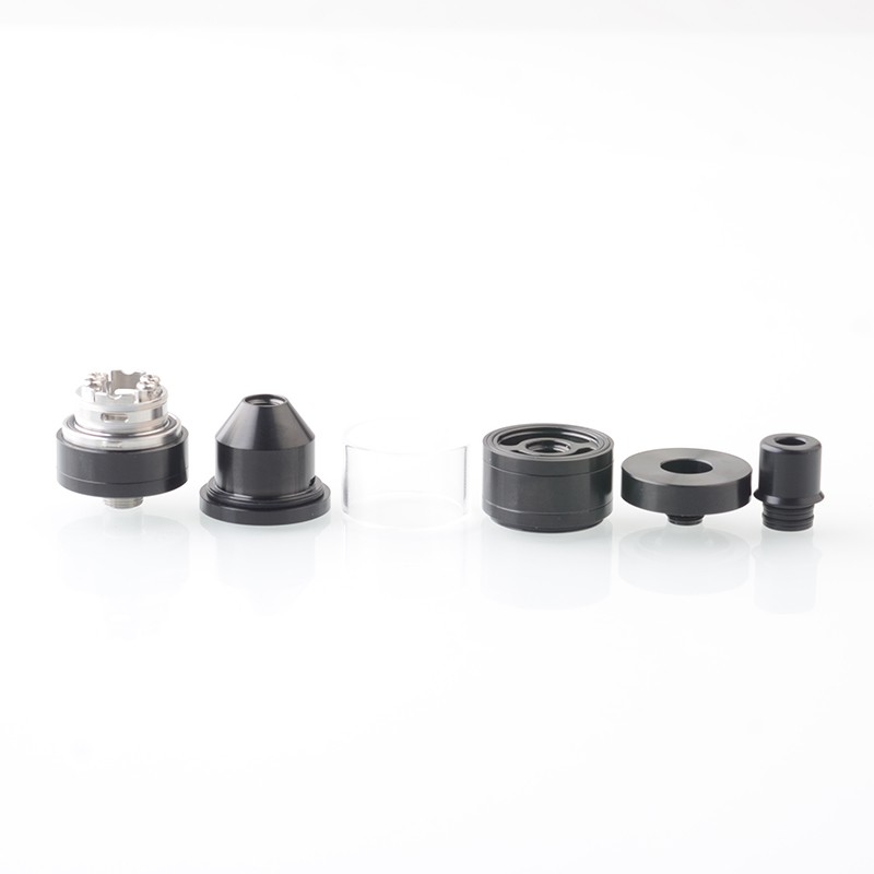 | Package | 1 x Order V2 RTA, 2 x Pyrex Glass, 2 x Drip-tips, 6 x Air Pins (1.0 / 1.2 / 1.4 / 2.0 / 2.5 / 3.2mm, 2 x Airflow ring, 1 x Spare kit |