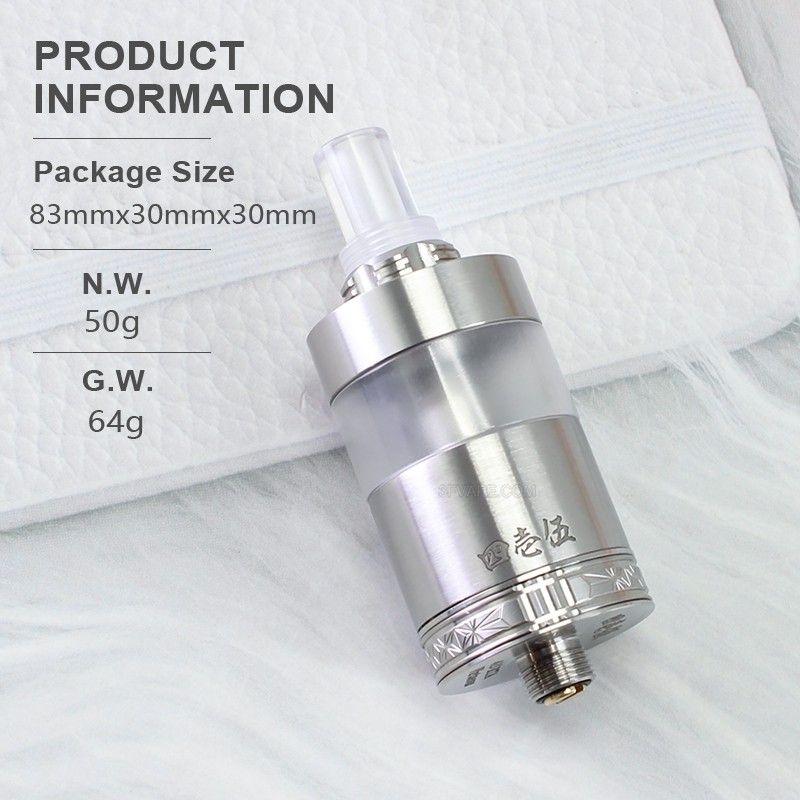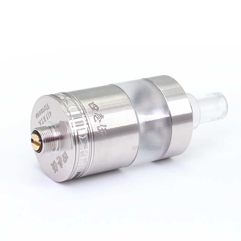 The SXK Four One Five 415 RTA Virtuous Style Atomizer is made from 316 stainless steel with 22mm diameter and PC tank tube with 3.3ml capacity. This MTA is with single coil deck for MTL vaping. Comes with 4 PCS Ari Pins: 2 x 0.8mm (pre-installed)., 1 x 1mm, 1 x 1.4mm, 3 x 0.8mm.