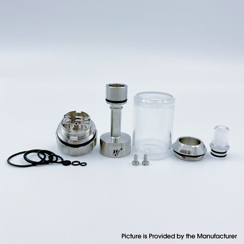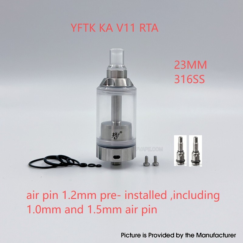 The YFTK BY-KA V.11 V11 Style MTL RTA Atomizer Standard Set is made from 316 stainless steel with 23mm diameter and PCTG tank tube. The RTA comes with 3 PCS Air pins: 1.0mm / 1.2mm (installed) / 1.5mm for MTL Vaping.