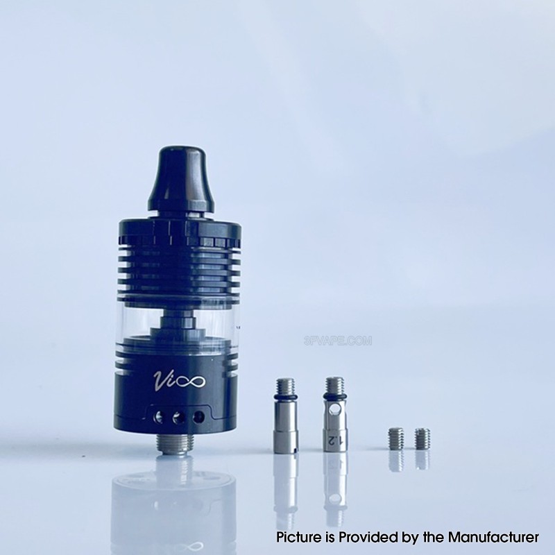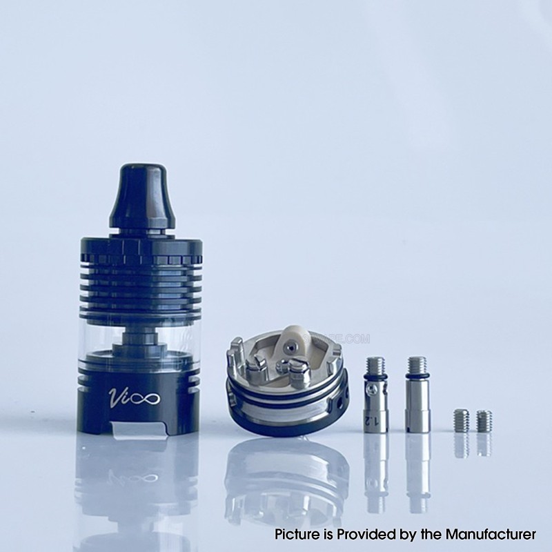 The Rekavape Vico Style 22mm MTL / RDL RTA Rebuildable Tank Atomizer is made from Stainless Steel with 22mm diameter and glass tank tube with 4.0ml capacity. The RTA is with 0.9 bottom air pin and 0.9 tilted airscrew (pre-installed), Bottom air pins: 0.9mm (pre-installed), 1.2mm and closed and Airscrews: 0.9mm (pre-installed), 1.2mm, and closed